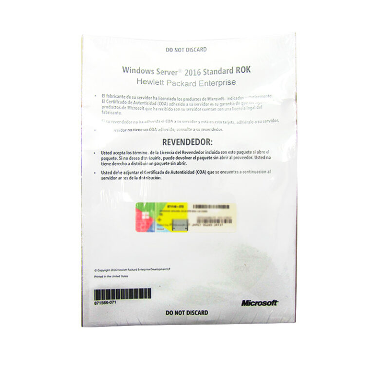 Licencia Microsoft Windows Server 2016 Standard 16 NĂşcleos OEM ROK HPE P00487-071